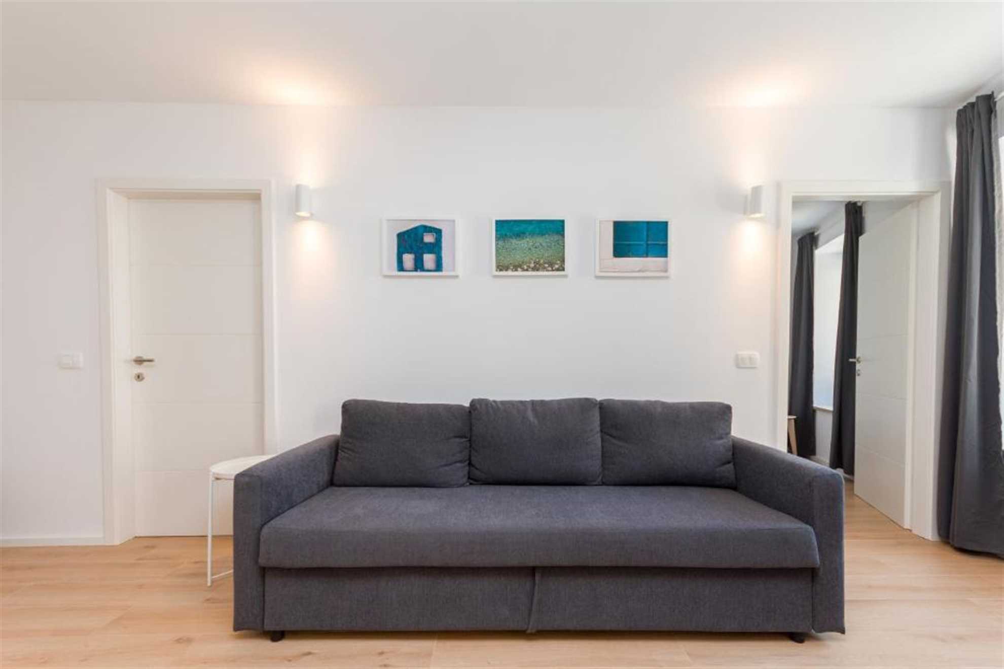From the apartment, you can attend concerts or other events while enjoying privacy. In the immediate vicinity of the apartment are bars, restaurants, museums, and galleries. Premium Tartini Apartment 2 Piran is a renovated accommodation unit on 40 m2. It is furnished in a minimalist style and furnished in earthy soft tones. The layout includes a kitchen with a dining area and an open living room, a bedroom, and a bathroom.