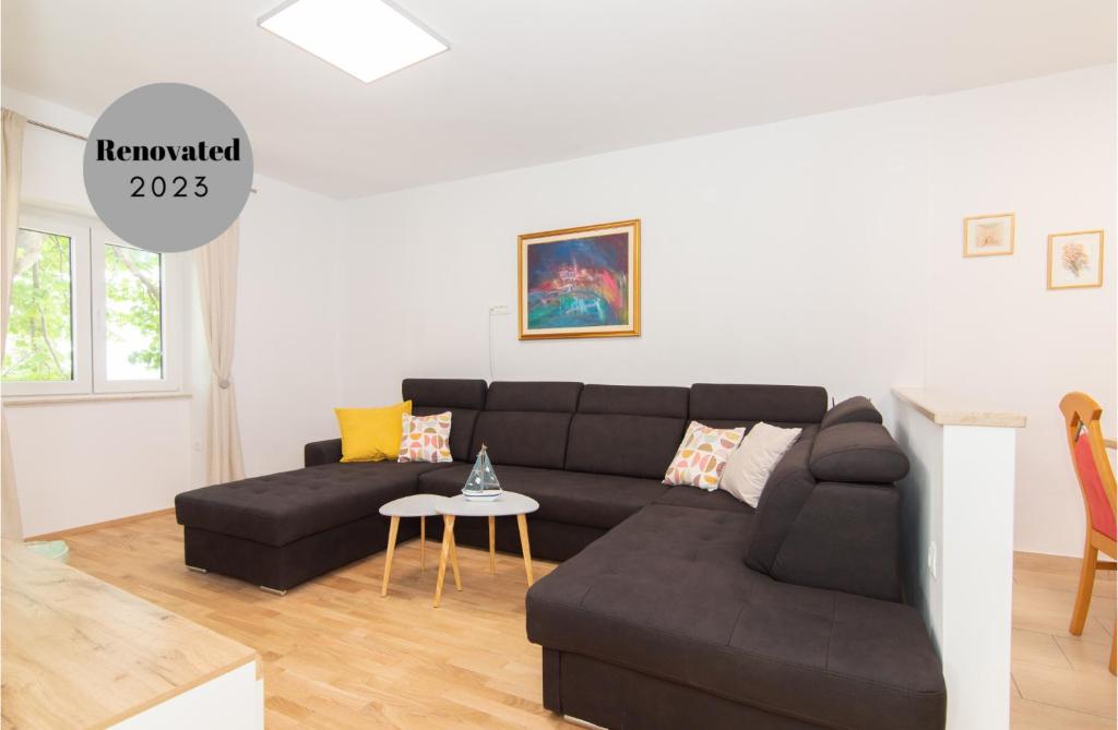 The apartment has 50 m2. The renovated apartment features two bedrooms, a living room, a kitchen with a dining area, a bathroom, and a terrace in the garden, which is shared with other accommodation units. The first bedroom contains a double bed, while the second bedroom or children's room is equipped with two single beds. The rooms are decorated with paintings on canvas with marine motifs. The living room includes a comfortable sofa set, a flat-screen TV, and a coffee table. The living room offers a view of a part of the Walls of Piran and the sea. The kitchen is fully equipped and connected to the dining area and the living room. The kitchen window overlooks the entrance of the Walls of Piran. The bathroom is equipped with a shower cabin and adorned with wood and mosaic tiles. The renovated apartment is bright and extremely comfortable. It is particularly popular among families or groups of friends.